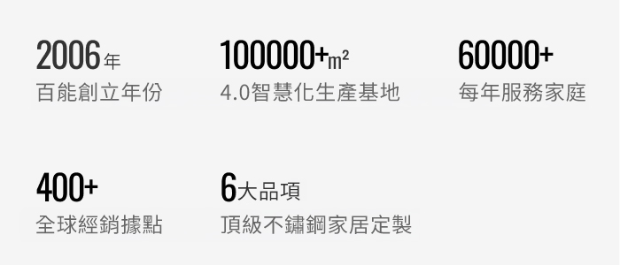 百能作為不鏽鋼櫥櫃的領先品牌,憑藉工業 4.0 智能製造與百餘項專利技術,專利工藝與權威認證徹底革新居家空間 。